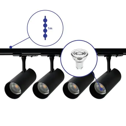Bright Choice Complete Set 1-Fase Rail 1 Meter Zwart | incl. 4x Spot + GU10 2700K 3W Dimbaar + Eindkap, Voedingsconnector