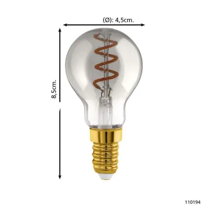Eglo LED Kogel E14 Filament Smokey 4W 100lm - 820 Zeer Warm Wit | Dimbaar - Vervangt 15W
